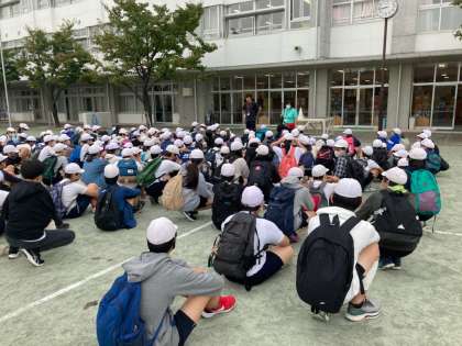出発式も終わり、総合運動場に向けて出発しました。天気が持ちこたえてくれるといいのでが。