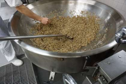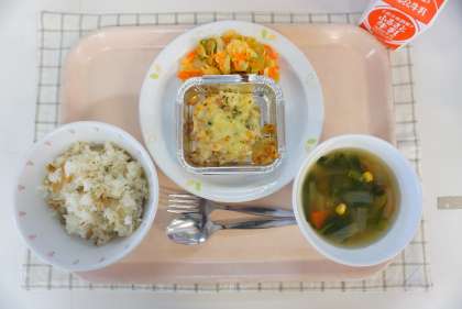 ガーリックライスには、じゃことベーコンを炒めて加えます。小魚でカルシウムも摂れる料理です!