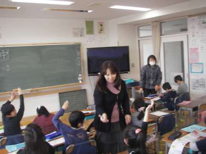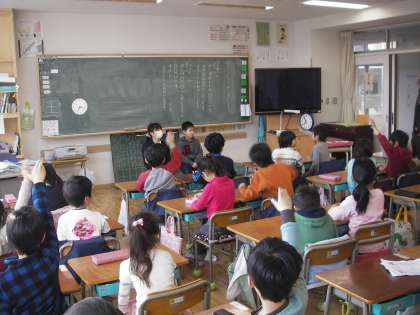 公開週間2日目です。1年生の1校時、1組は転入生が新しく来たのでみんなに紹介していました。2組は図工です。「1年間のできごとを描こう」という単元です。1年間の行事など振り返り、描く場面を決めていました。3組は国語です。漢字の学習を進めていました。
