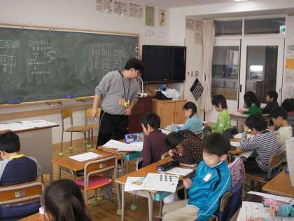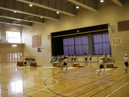 公開2日目、2校時の2年生は1組 国語「にたいみのことば」の勉強です。わくわく うきうき、心はずむ などどんな時に使うのか発表しています。2組は算数です。新しい単元に入る前のプレテストをしていました。四つの数字を足すと同じになる組み合わせを探しています。電卓がないので一生懸命に足し算をしています。3組は体育です。体育館で跳び箱に挑戦です。