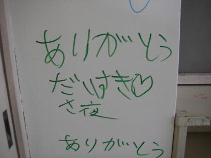 7日の校舎お別れイベントでは、校舎の壁、廊下、階段、教室、校長室様々なところにそれぞれの人たちが自分の思いを書いてくれました。全てに共通しているのは「ありがとう」という感謝の気持ちの言葉です。○○先生ありがとうございました。○○先生サイコーでした。思い出ありがとう等々の言葉を読むにつけ、胸にジーンとこみ上げてくるものがありました。このような素敵な企画を考え、実行してくださったPTA会長や役員、保護者の方々に心から感謝しています。