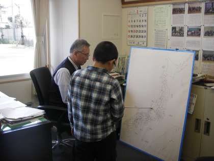 今、給食の準備の時間に4年生が全国都道府県名検定に来ます。テストなのでとても緊張しています。北海道からはじまり、東北地方、関東、中部、近畿、中国、四国、九州地方まで順番に県名を言います。
