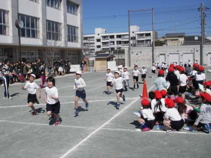 13日はマラソンデーです。今日で京西小学校の全学年のマラソン・駅伝が終わります。2時間目は1年生のマラソンです。5分間にどれだけ走れるかに挑戦です。みな全力疾走です。