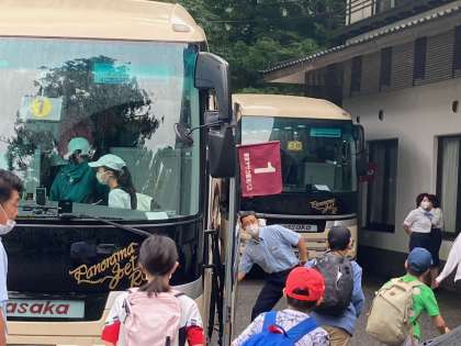 続々とバスに乗り込んで、ハイキングに行ってきます。