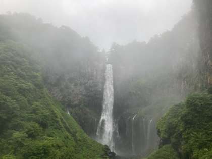 華厳の滝に来ました。雨が降っていますが、なんとか霧が晴れて滝を見ることができました。