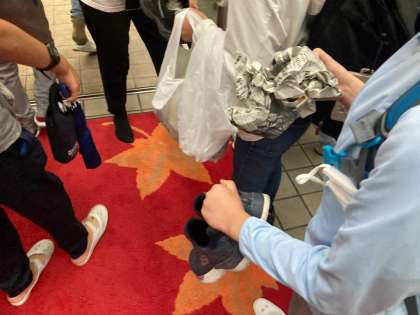 宿の方が、丸めた新聞紙を用意してくださったので、靴が濡れた人は中に詰めることができました。