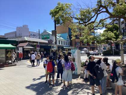 八幡宮からクイズを解いたり、チェックポイントを通って鎌倉駅までグループで来ました。