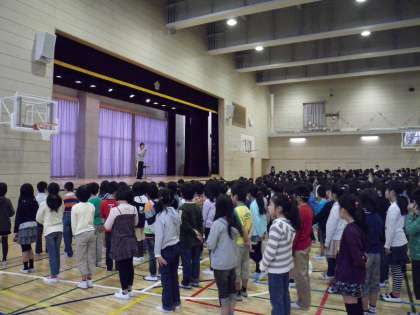 今日の全校朝会は「命が一番大切です」というお話でした。入学式を終えた次の日に1年生が交通事故にあいました。砧公園通りを渡ろうとしました。右から来た車が止まってくれたので渡ったところ、左から来た車にはねられてしまいました。奇跡的に命は助かり頭部の打撲等もありませんでした。足の付け根の骨折で済みました。