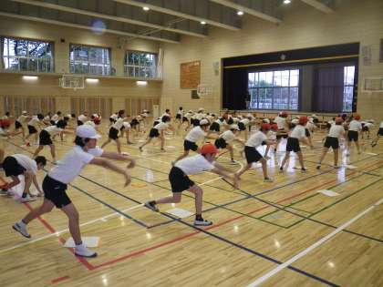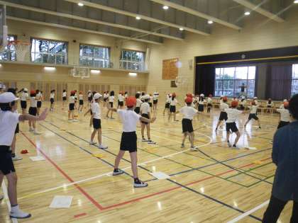 10日の5校時、体育館で5年生が運動会の練習をしていました。写真をご覧になり、何の練習か分かりますでしょうか。