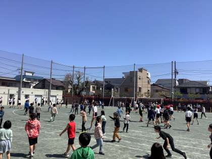 新学期初めての中休みでした。みんな元気に校庭で遊んでいました。