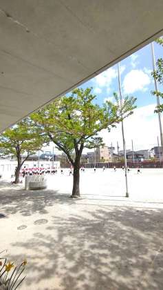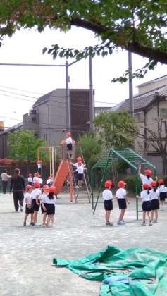 その後は、遊具で少し運動をします。京西小学校には、ジャングルジム、滑り台、雲梯、上り棒、鉄棒があります。