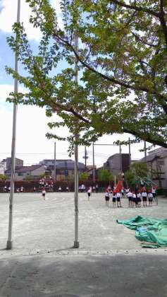 最後に、笛がなって集合がかかりました。さっとやめて、駆け足で集合していました。素早い集合!素晴らしいです。