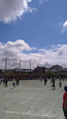 京西小学校は、約600人の児童がいるので、校庭の他に割り当ての学年が「体育館」と「第2校庭」に分かれて遊んでいます。