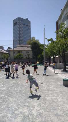 今日は太陽も強いですが、それ以上に風が吹き荒れており、風で舞う砂に翻弄されながらの校庭体育や休み時間になっています。ただ、風のおかげで体感的には少し涼しく感じます。