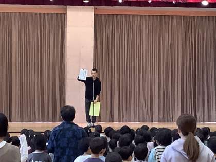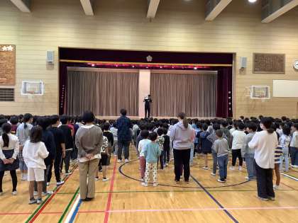 1年生は、初めての全校朝会でした。しっかりお話が聞けました!