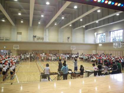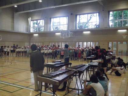 今日の音楽朝会は運動会で歌う歌の練習です。「運動会の歌」そして閉会式で歌う「校歌」です。演奏や指揮は子どもが行います。指揮者が臆することなく堂々と指揮をしていました。見ていて清々しい気持ちになりました。(校長 箭内)