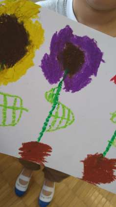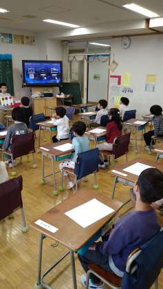 1年生は、図画工作で描いた「すきなもの」をみんなに紹介していました。