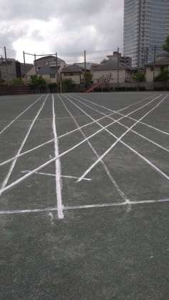 校庭は、今日も朝からバッチリ短距離走準備ができています。