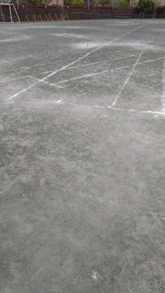 校庭には水たまりができています。京西小学校の校庭は水はけがいいので、雨が止みさえすれば使えますが、今日は降ったり止んだりで外での活動は難しいかもしれません。