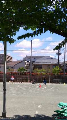 すぐに使えると思った校庭でしたが、昨日の長い雨の影響でぬかるみがあり、中休みまで使用中止になりました。3校時から使用再開です。