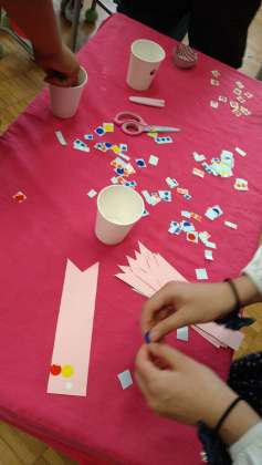 聞けば、紙やシールなど、必要な材料などは、係の児童が全て準備したそうです。すてきな5月の飾りができそうですね。自主的な係活動、素晴らしいです。