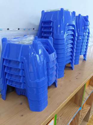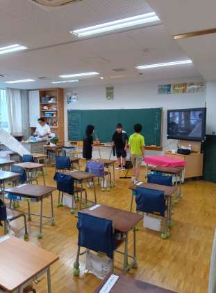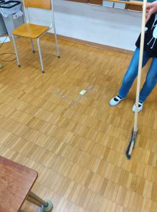 昼休みが終わってそうじの時間になり、2階を通りかかると、1年生が帰った後の教室を6年生がそうじをしてくれていました。ごみを取り、机をきれいに並べて明日に備えます。