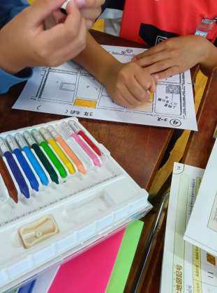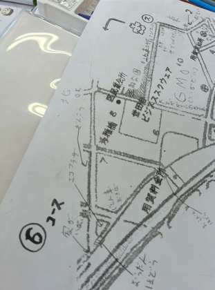 同じ方面を回った人が集まり、自分が調べてマップに書き込んできたきたことを伝えて、1枚の紙にまとめていくようです。4人グループが多いです。3人でも文殊の知恵・・・4人集まったら・・・心強いですね。