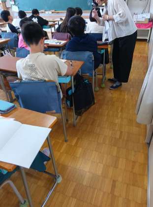 学習した内容で、近くの児童と会話のやりとりをしていました。それを先生が見て回り、パフォーマンスの様子から学習の内容が身に付いているかを見取っています。