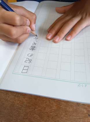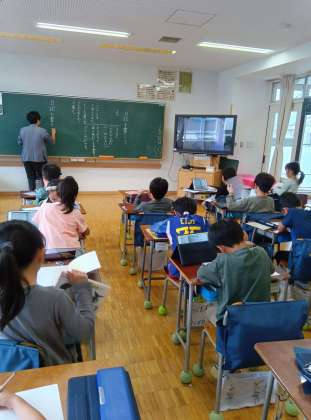 国語の学習では、よく初めの方の単元で、1年間続けていく取組についての学習があります。2年生もこの取組を続けていくようです。この日は、先生の書いた良い例を参考に学習をしていました。続けていく中で、上手に書いている友達の日記なども参考にできるといいですね。