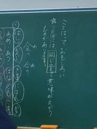 同じ音(おん)で意味が違う「ことば」(教科「日本語」の中では、「ことば」は平仮名で表記します。)についての学習です。