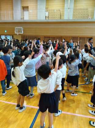 朝会や集会の終わりにも「京西さくら組」の音楽に合わせて退場をします。2年生は、入学式のアトラクションでもすてきな「京西さくら組」を手話付きで披露してくれました。集会から戻るときには、音楽がかかると誰からともなく手話が始まり、歌声が響き始めます。この日は、更に、教室に戻っての1時間目がちょうど音楽で、「京西さくら組」を歌っていました。