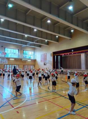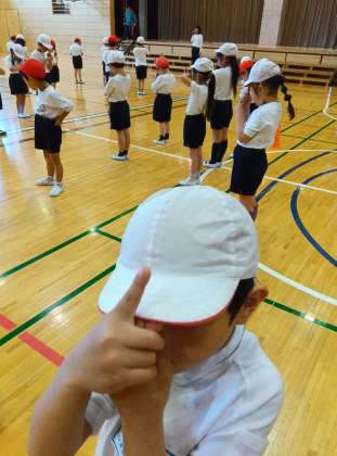 1年生の運動会の表現は忍者です。練習もだいぶ進んで動きも覚えてきたようです。隊形移動にも取り組んでいました。