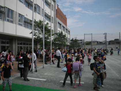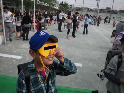 今日は金環日食が見られる日でした。1987年9月23日に沖縄で見られて以来25年ぶりです。校庭にはたくさんの子どもたち保護者の方が集まってくれました。