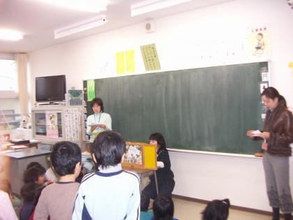 1組は音楽に合わせて絵本を読んでいただき、2組は紙しばいでした。
