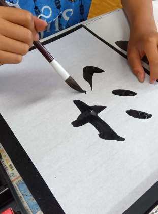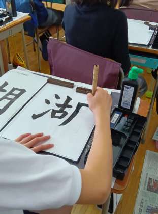 書いていた字は、「湖」の一字。きっと子どもたちの心も、風のない凪の日の湖面のように静けさに包まれていたことでしょう。
