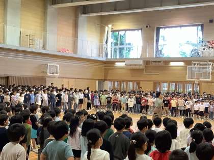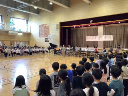 全校児童のきれいな歌声が体育館に響き渡りました。