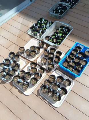 かわいらしい飾りがついたものやお気に入りのスニーカー、普段履いているものでしょうか。自分の足をいつも守ってくれているスニーカーに種も守ってもらう・・・何て、勝手にストーリーが思い浮かんでしまいます。