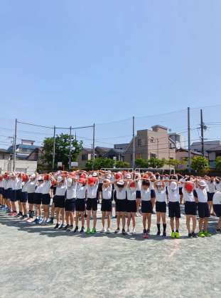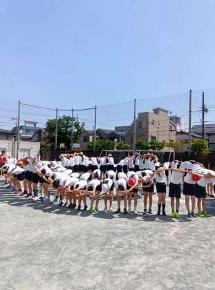 この日の6年生は、校庭でひたすらウェーブの練習でした。