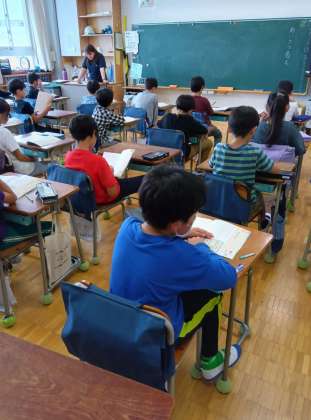 3年生が道徳で「挨拶」に関するお話を読んで考えていました。