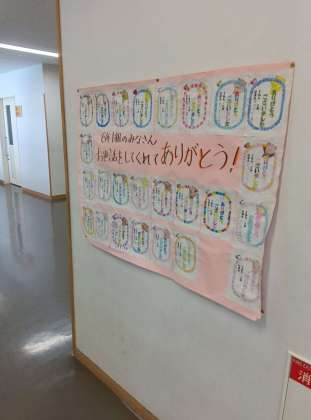廊下には、以前に紹介した1年生からの「ありがとう」のお手紙が♪6年生に贈られていたんですね。これはうれしい♪