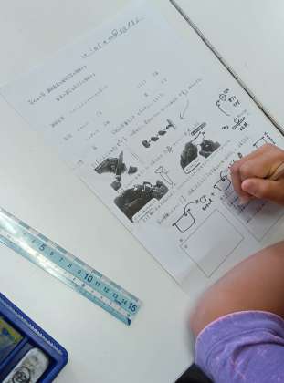 5年生が調理実習の計画を立てていました。準備する道具や手順を確認しています。