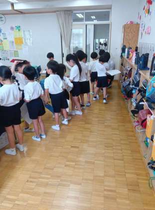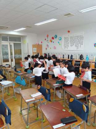 先日1年生の授業で、授業を参観に来ていた教育実習生に丸を付けてもらう1年生の長蛇の列です。