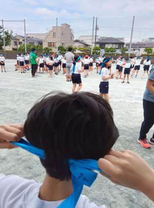 鉢巻は、巻くと気合が入ります。途中激しく動くので、外れないようにどこに巻くか、どのように巻くかが重要です。髪を結んでいる人は、結び目の下、かつ、首の上の方、窪んだ辺りがいいようです。本番までに、ベストな巻き位置を見付けてきてください。