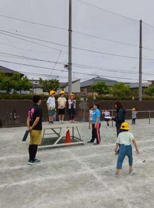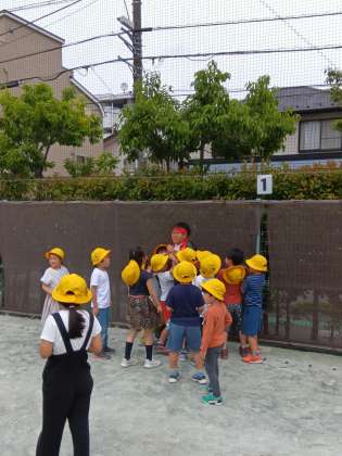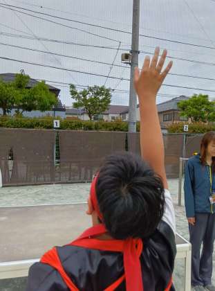 ちなみに、右の写真は、練習前に1年生に取り囲まれる応援団長です。人気者です。