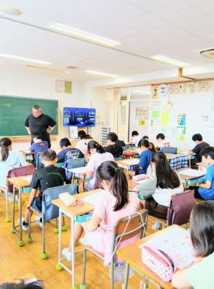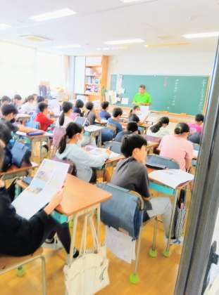 6年生の教室に行くとテストをしているところと、テストを返しているところでした。