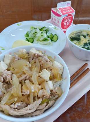 運動会の前の日だし、「かつ丼(勝つ丼)」じゃないんだ、と思った私が浅はかでした。給食の「ひとくちメモ」には、こうあります。