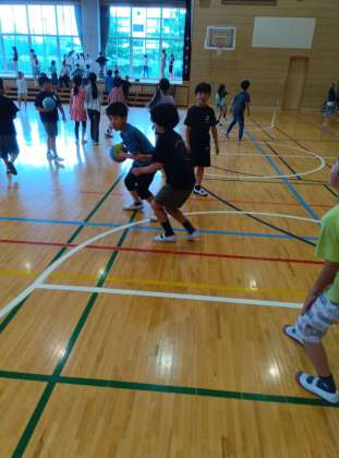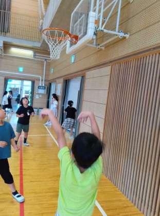 バスケットボールに入れてもらいました。おそらくエアコンは入っていないですが、体育館は結構涼しいです。気温は運動に適しているんですが・・・校庭は昼休みも厳しいかな・・・そして午後からは再び雨になりそうですね。