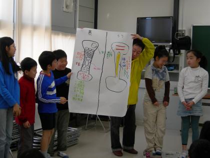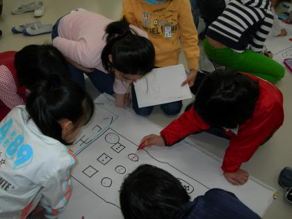初めにお話を聞き、『だれもが使いやすいテレビのリモコン』についてグループで考えてみました。「触っただけで何のボタンだかわかるように形を変えたよ」「ボタンを押すとチャンネル番号や時刻をしゃべってくれるよ」など様々なアイデアがでてきました。