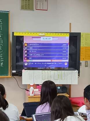 学習の内容が終わり、プラスアルファとして取り組んでいる内容です。児童は、ニックネームで参加し、問題ごとに発表されるランキングに一喜一憂していましたが、一様に楽しく取り組んでいるようでした。こんなことができるのか、という驚きをもつとともに、学習のバリエーションの1つとして面白い取組だなあと思いました。