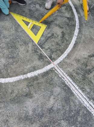 年に1度だけ、校庭で三角定規を使うことがあります。算数ではなく、ただ角度を測るために・・・。